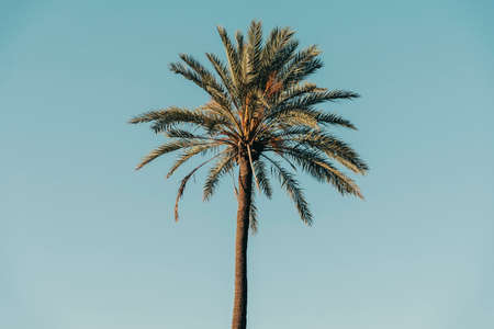 Beautiful palm tree on sky background - Vintage Filter and Boost up color Processing