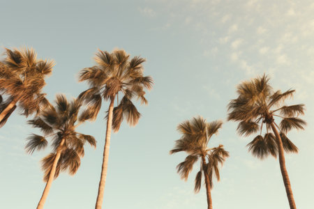 An AI generated illustration of tall, tropical palm trees under a blue sky