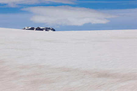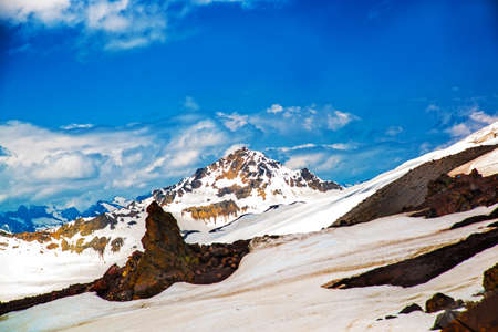 Snow in the summer on high mountains. Blue sky in the clouds. Elbrus