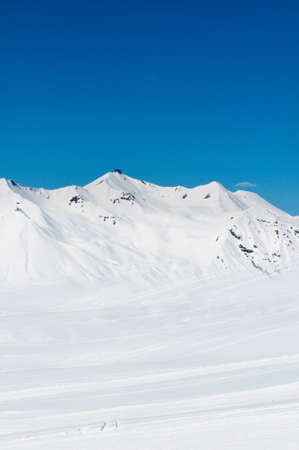 Mountain landscape with snow and blue sky. Caucasus Mountains, Georgia, region Gudauri.