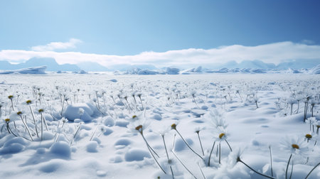 Snow-Kissed Daisy Field in Winter - AI Generated