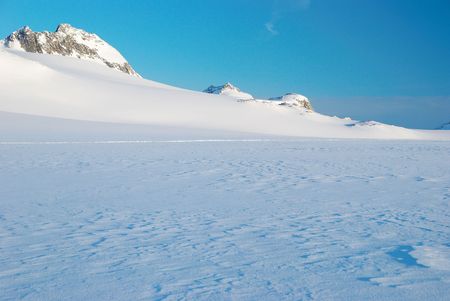 Mountain landscape with snow and clear blue sky