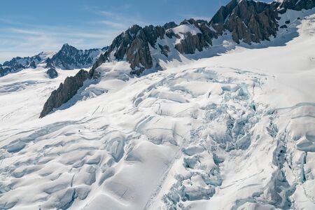 Fox glacier peak view from Helicopter, New Zealand natural landscape background