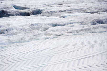 tire tracks in the snow - columbia icefield, jasper national park, canada -
