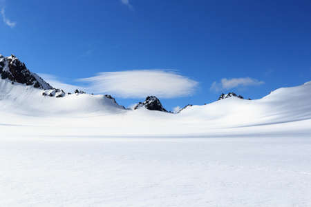 Mountain snow panorama on glacier Taschachferner in Tyrol Alps, Austria