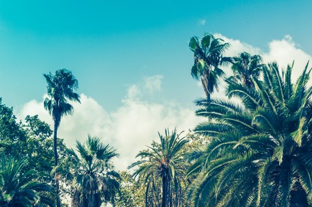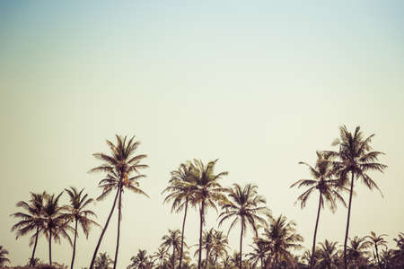 Palm trees against the blue sky. nature background. Travel tropical summer holiday concept. Vintage tone. copy space