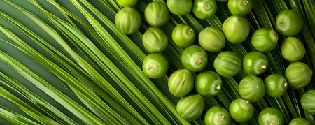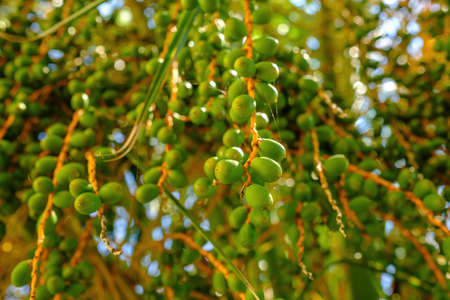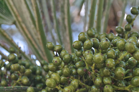 Green berries on a palm close-up, used as a background or texture