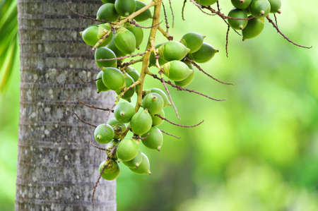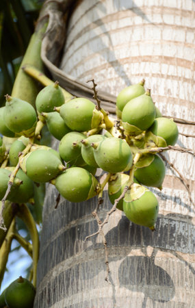 Green Areca Nut or Betel Nuts from Areca palm, Medium Shot in the Garden