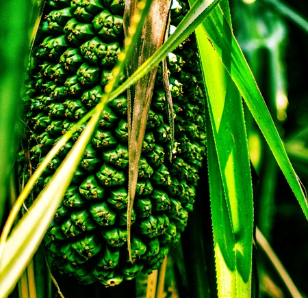 Common screwpine (Pandanus utilis) closeup. Exotic tasty fruit from Madagascar tropical island.