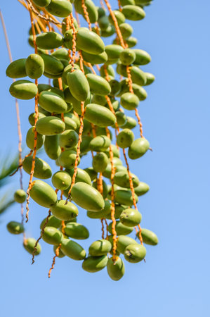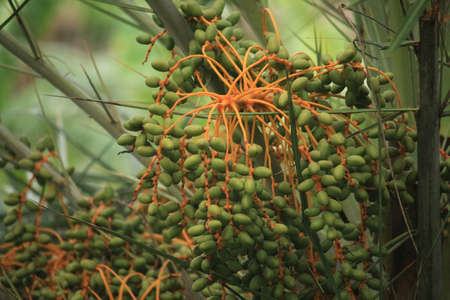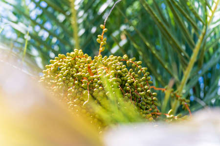Green Date palm or Phoenix dactylifera close-up