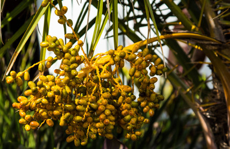 Closeup of the palm tree fruits