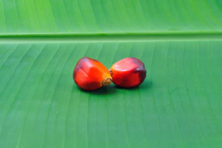 red seed and new green palm seed on tree in the garden