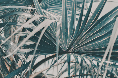 Green palm leaf pattern texture abstract background. Copy space for graphic design tropical summer and nature environment concept. Vintage tone filter effect color style.
