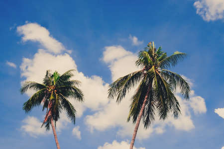 sky and coconut plam on summer vintage and copy space