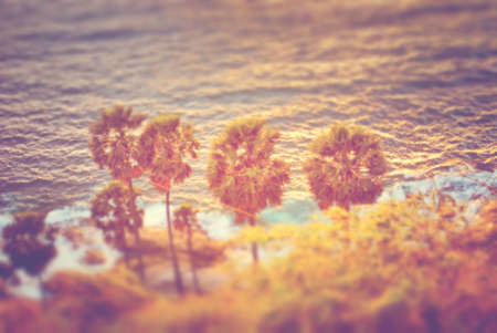 Abstract Blur of palm tree in sunset beach background