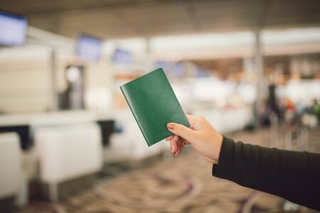 Hand holds out green passport with usa dollars. Concept - briber and corruption