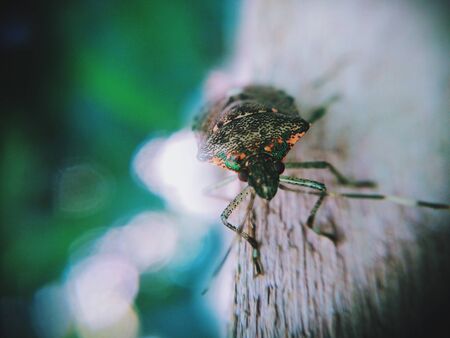 brown forest tree bug sitting on green vegetation, close-up in natural environment