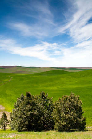 Rolling green grass hills of the Palouse region of Eastern Washington State