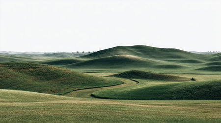 A breathtaking open landscape featuring rolling green hills under a soft sky, inviting viewers to experience the tranquility and beauty of nature's design.