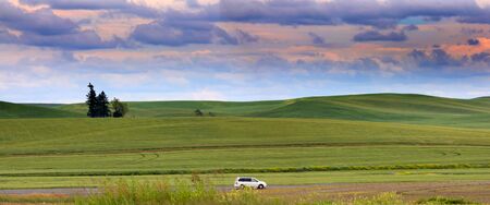 Empty highway in the Palouse region and wheat fields of Eastern Washington state