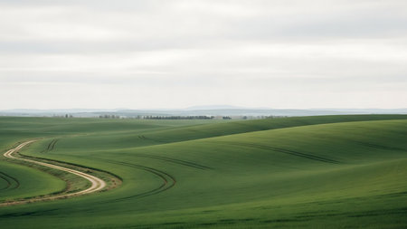 Green rolling wheat fields natural scenery