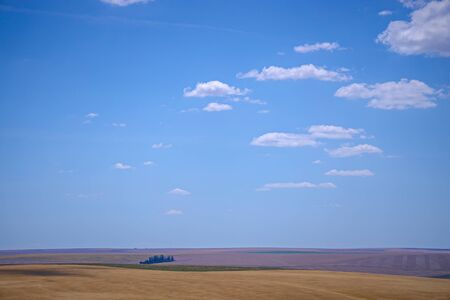 Rolling fields of argricuture fields in eastern Washington State in the Palouse region with sunny summer blue skies