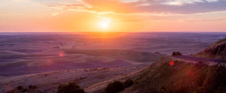 Beautiful sunset golden hour view of the Palouse as seen from Steptoe Butte State Park in Washington State USA