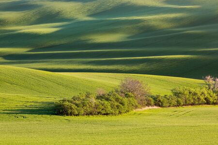 Sunset lines and waves with trees in the spring, South Moravia, Czech Republic