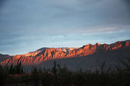 Small houses covered by the shadows of the Andes mountains in Uspallata, province of Mendoza, Argentina.