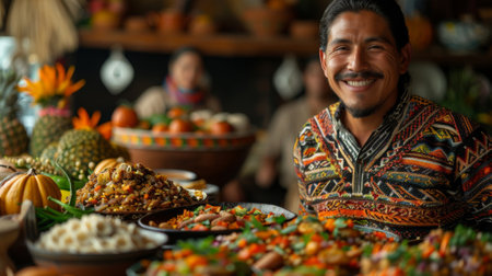 Thanksgiving and Harvest Festival. A multicultural Thanksgiving celebration, featuring dishes and traditions from different cultures, showing the diversity of Thanksgiving celebrations worldwide.