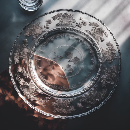 bright orange serving dish, top view, with copy space and empty space. this digitally manipulated image showcases the caffenol developing process, resulting in a beige hue. shot with a fujifilm x-t4, it exudes social commentary through its cartoonish simplicity and subtle chromatism. ai generated