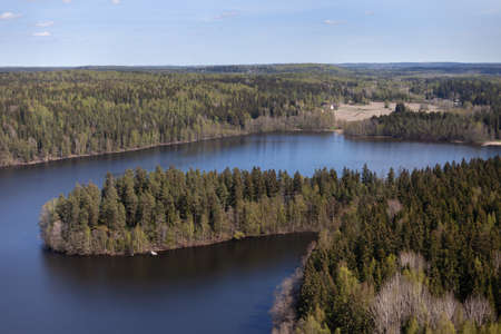 Beautiful view to the lake Pyhajarvi from mountain Hiidenvuori on island Hiidensaari, Finland