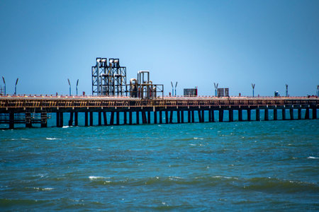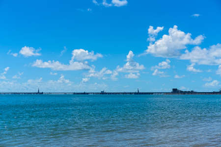 Sea landscape with a bridge extending to the horizon, creating a scenic and endless view over the water.