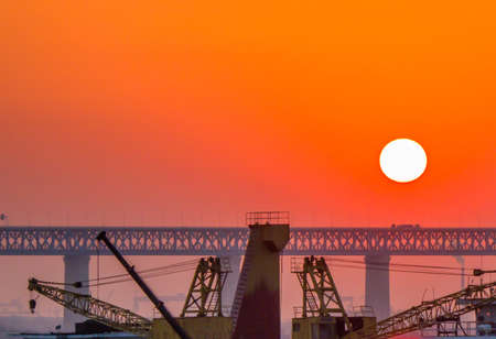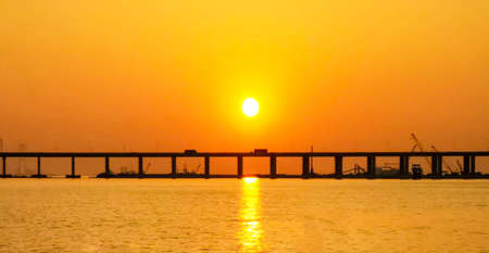 Batu Kawan, Penang/Malaysia - Feb 27 2020: Sultan Abdul Halim Muadzam Shah Bridge during sunset.