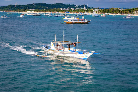 BORACAY ISLAND, PHILIPPINES - November 18, 2017 : Hopping, Dive boats in the Boracay sea