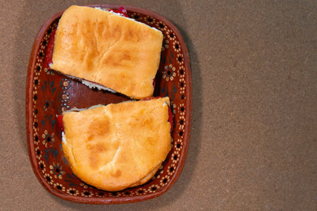 Dish with pieces of stuffed pambazos, traditional Mexican food