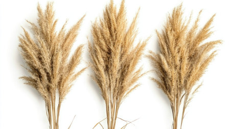 A close-up shot of a bunch of dried pampas grass in front of a white background.