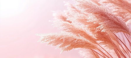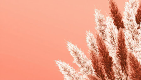Background floral plant bouquet dried flowers cortaderia pampas grass for home interior decor trendy reed plant decorative fluffy pink coral feathers with copy space