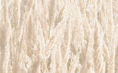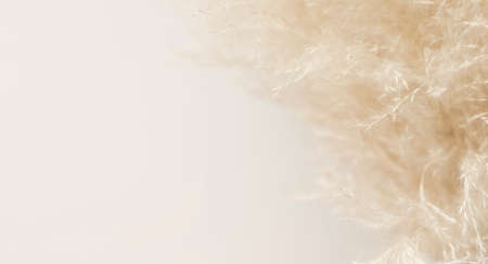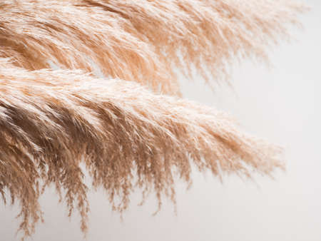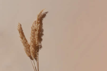Reeds on a beige background. Fluffy pompas grass. Background of reed panicles. Natural texture. Trend 2021.