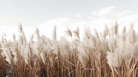 Generative AI, Pampa grass branch with sky. Abstract natural boho background of soft plants, Cortaderia selloana