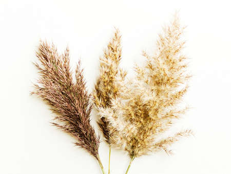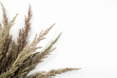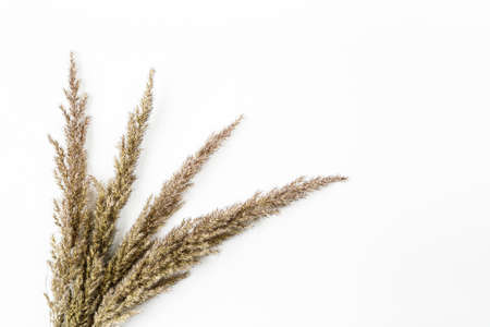 Dry grass on a white background. Greeting card concept, place for text. View from above