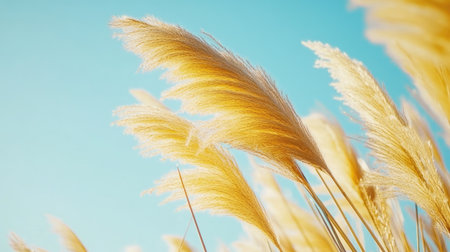 Golden pampas grass swaying in the breeze, set against a clear blue sky, capturing the beauty of nature in motion