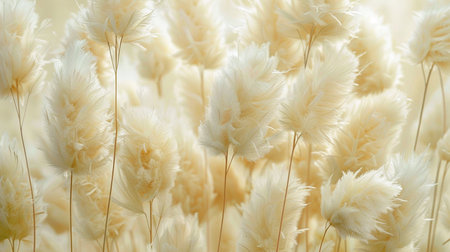 Crema color fluffy plants close up.Fluffy feathery plant, Generate Ai