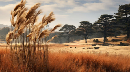 grassland autumn splendor captured in a high-resolution, hyper-realistic shot using the canon eos-1d x mark iii. the vivid colors and intricate details of the scene come to life in this professional photograph. ai generated