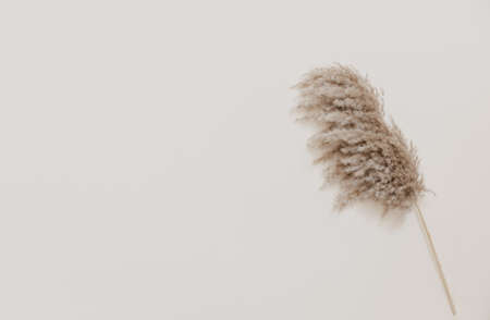 Pampas grass on a beige background. Minimalistic eco friendly concept with copy space. Top view. Flat lay. Dried flower in the sunlight