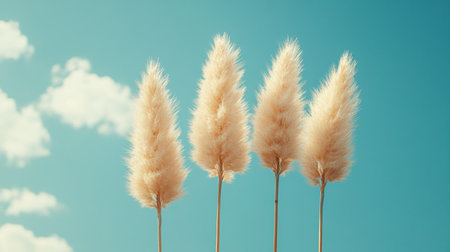 Four fluffy pampas grass stems against a vivid blue sky Aesthetic minimal nature background