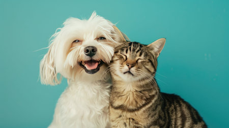 Assorted cats and dogs in studio setting with white background for versatile design