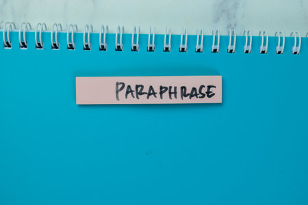 Concept of Paraphrase write on sticky notes isolated on Wooden Table.