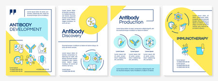 Antibody development blue and yellow brochure template. Leaflet design with linear icons. Editable 4 vector layouts for presentation, annual reports. Questrial, Lato-Regular fonts used