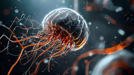 Microscopic cell nucleus tentacle biology science medical dark abstract mysterious closeup